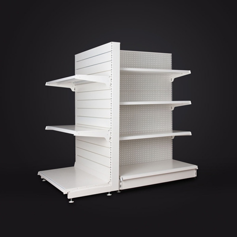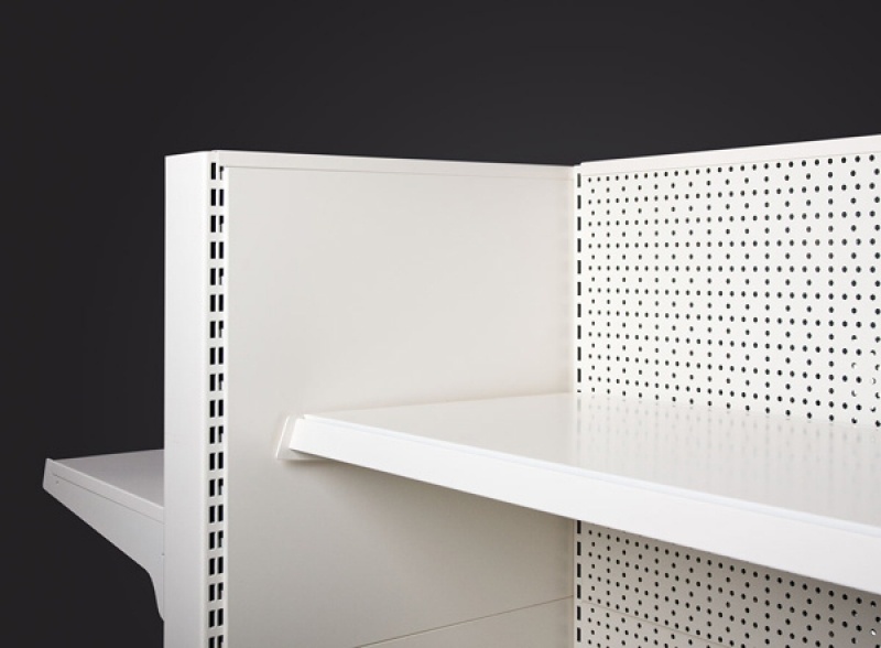 Inchidere capat gondola pentru rafturi de mijloc/gondole Eden Europa. Cu ajutorul acestor elemente se configureaza terminalele gondolelor in varianta de continuitate al rafturilor. Se pot modula atat in varianta de dotare cu rafturi conform aliniamentelor gondolei cat si cu placa spate perforata dotat cu agatatori pentru expunerea suspendata al produselor mici. Disponibil la orice inaltime necesara.