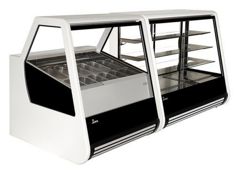 Vitrina de înghețată DOLCE ICE este un dispozitiv cu sticlă dreaptă, înclinată, echipat cu o unitate de răcire cu răcire forțată ,dezghețare automată și evaporare a condensului.Carcasa are un finisaj din oțel inoxidabil, iluminat cu LED și o carcasă din lemn care poate fi vopsită în orice culoare aleasă de dvs. din paleta RAL JUKA .