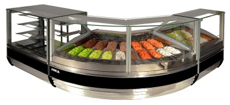 Vitrina de inghetata Magnum Ice este unul dintre cele mai populare echipamente al producatorului JUKA din categoria de expozitoare de inghetata. Varietatea extinsa al modulelor de vitrine ofera posibilitatea de a realiza orice configuratie in linie a vitrinelor incluzand chiar si elemente din categoria de refrigerare pentru expunerea produselor de cofetarie sau patiserie cat si elemete neracite / neutre . Forma eleganta interior si blat de lucru din otel inoxidabil Agent frigorific R290 racire ventilata ,iluminat interior LED, geam plexi spate culisabil.