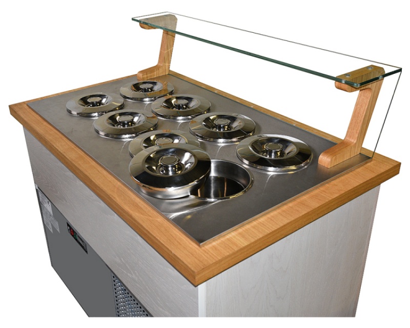Distribuitorii de înghețată fac parte din categoria vitrinelor frigorifice și sunt adesea supuși unor cerințe foarte specifice. Dacă doriți să atrageți clientul cu lingurițe de înghețată frumos aranjate, aveți nevoie de un distribuitor de înghețată care poate menține temperatura constantă în interior.Dacă dispozitivul dvs. nu gestionează bine această funcție, atunci înghețata din partea inferioară a recipientelor gastro începe adesea să înghețe și, dimpotrivă, se topește la suprafață. Rezultatul nu este o vedere foarte frumoasă și chiar mai rău este munca cu înghețata, deoarece este scoasă mai moale decat starea ei normal. În aceste scopuri, merită să investiți și să cumpărați o vitrina de înghețată cu răcire ventilată, parbriz încălzit și geamuri laterale .Brandul JUKA prin modelul Malaga adoptă o abordare diferită în ceea ce privește depozitarea și prezentarea înghețatei și trebuie remarcat faptul că această abordare este un mare succes în țara noastră și în lume.Vitrnia frigorifica petru inghetata moale cu depozitare in cuve clasice rotunde cu răcire statică la temperatură ambiantă maximă + 30 ° C și umiditate 55% Interior oțel inoxidabil placă superioară sticlă suprastructură recipient gastronomic cilindric cu capac - diametru 20 cm (volum container - 7,3 l) .