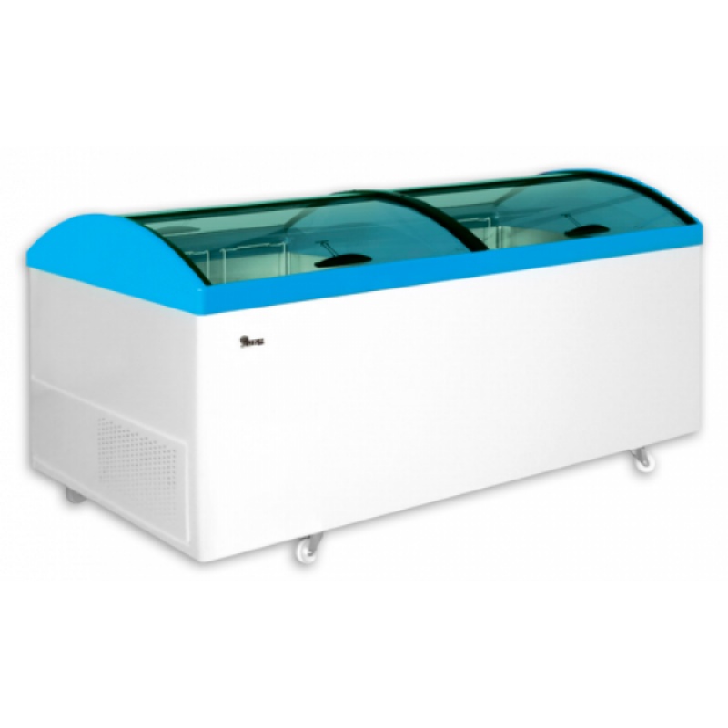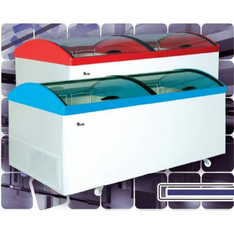 Consum redus de putere; Funcționare fiabilă intre -14..-23*C la temperaturi ambiante ridicate de până la +32 C; Fixare puternică a mânerelor pe sticlă; Învelișul superior al unui cufăr este fabricat din plastic rezistent la șocuri, rezistent la uzură, cu o folie de protecție; Carcasa este fabricată din oțel laminat electrolitic; Acoperire cu pulbere multistrat pentru sarcini grele; Acoperire interioară - foaia de aluminiu plastifiat;Izolație poliuretanică de înaltă densitate; Evaporator de aluminiu foarte eficient;Sticlă călită rezistentă la căldură; Iluminat interior LED dotat cu coșuri, picioare, si încuietoare cu cheie .