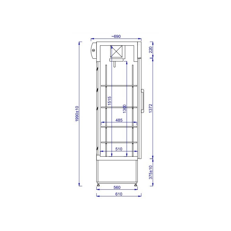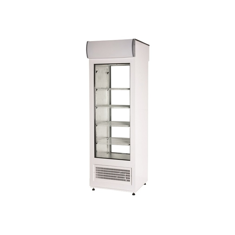 CC 635 GD + / CC 725 GD+ este o vitrina frigorifica verticala cu o usa din sticla pe lateralul din fata si una in spate o varianta perfecta pentru depozitarea pe termen lung si expunerea produselor alimentare. Dispune de o ușă solidă, răcire gravitațională, termostat electronic cu afișaj digital, evaporare automată a condensului și corp izolat cu spumă poliuretanică. Dotat cu 4 rafturi din sarma vopsita in camp electrostatic cu posibilitate de reglaj in inaltime cu dimensiunile de 485x510 mm. Temperatura realizata +1…+10*C.