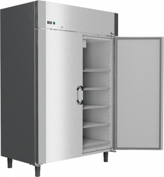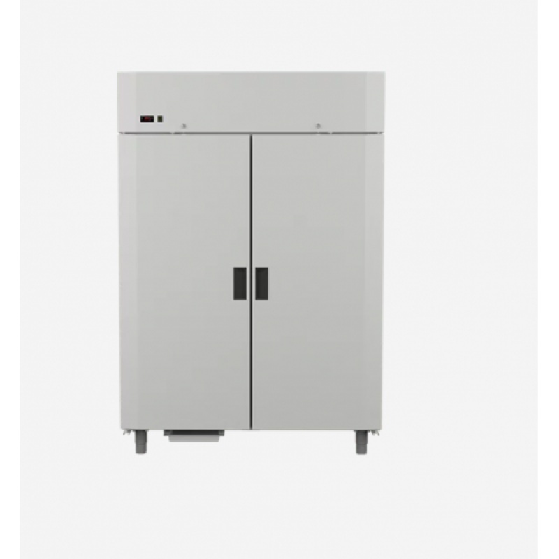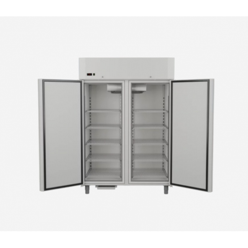 Dulap frigorific Congelare cu un corp spațios ND 140M cu carcasa din oțel zincat vopsit cu pulbere sau varianta cu otel inoxidabil este creat pentru bucătării- Sali de producție, depozite, magazine și unități de alimentație publică. Consum redus de energie electrica. Funcționare fiabilă la temperaturi ambiante ridicate.Capacitate foarte mare.10 rafturi cu zăbrele cu o latură din oțel galvanizat cu o acoperire polimerică, expuse pe înălțime. Sarcina admisibilă pe raft este de 30 kg. Funcționare perfecta si la temperaturi ambiante ridicate (până la 35 ˚C).Carcasa este învelită cu oțel zincat de 0,5 mm grosime, cu o acoperire polimerică de culoare albă. Optional Carcasa din INOX. Acoperirea internă a compartimentului frigorific - metal plastifiat cu o acoperire din PVC grosime 0,5 mm.Carcasa are un design de umplere integrat cu grosimea izolației termice a PPU de 70 mm.Ușa batantă este căptușită cu izolație termică din spumă poliuretanică CU funcție de închidere automată .Etanșare elastică a ușii cu inserție magnetică.Iluminarea compartimentului frigorific LED Evaporator cu conductă de aer pentru răcirea eficientă a tuturor nivelurilor de depozitare -răcire dinamică .Unitate electronică Carel cu funcție de dezghețare automată a evaporatorului. Compresor ermetic Embraco pe freon R452.Rezervor de evaporare a condensului. Picioare reglabile pe înălțime.Temperatura realizata -12..-22*C