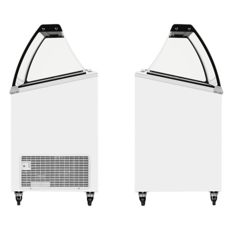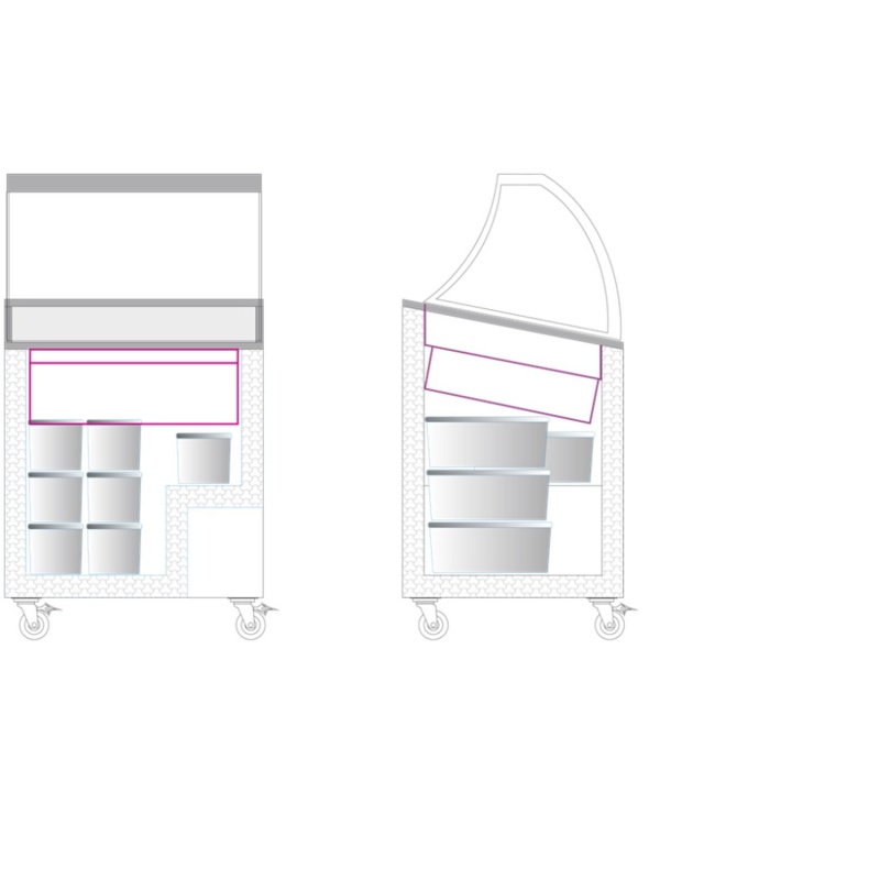Modelul de vitrina congelare pentru inghetata cu vanzare asistata ICE SCE+SO este un echipament conceput pentru a oferi posibilitatea de comercializare a produselor Ice Crem pentru cei cu un buget mai redus de investitii in echipamente .Dimensiunile variate pentru expunerea de la 4 la 12 cuve de expunere ofera posibilitatea de a alege varianta corespunzatoare conform sortimentelor pe care le doriti a oferi clientilor .Vitrinele ofera si un spatiu de depozitare sub suporturile de cuve unde se pot plasa conform dimensiunilor echipamentelor intre 7 si 22 de sortimente.Temperatura realizata -24...-14*C .Racire statica .Agent frigorific Ecologic R600 .Termostat mecanic Decongelare manuala .Culoare exterioara alb ..interior alb. Suprafatele exterioare permite o branduire maxima .