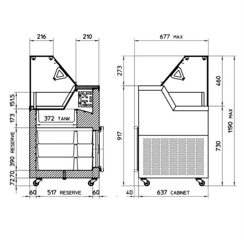 | MIRABELLE 6 | 1270x740x1290 mm | 6 /napoli pans[5lt] | 12/napoli pans[5lt] | 10.75 kWh/24h | 3199 eu+tva |